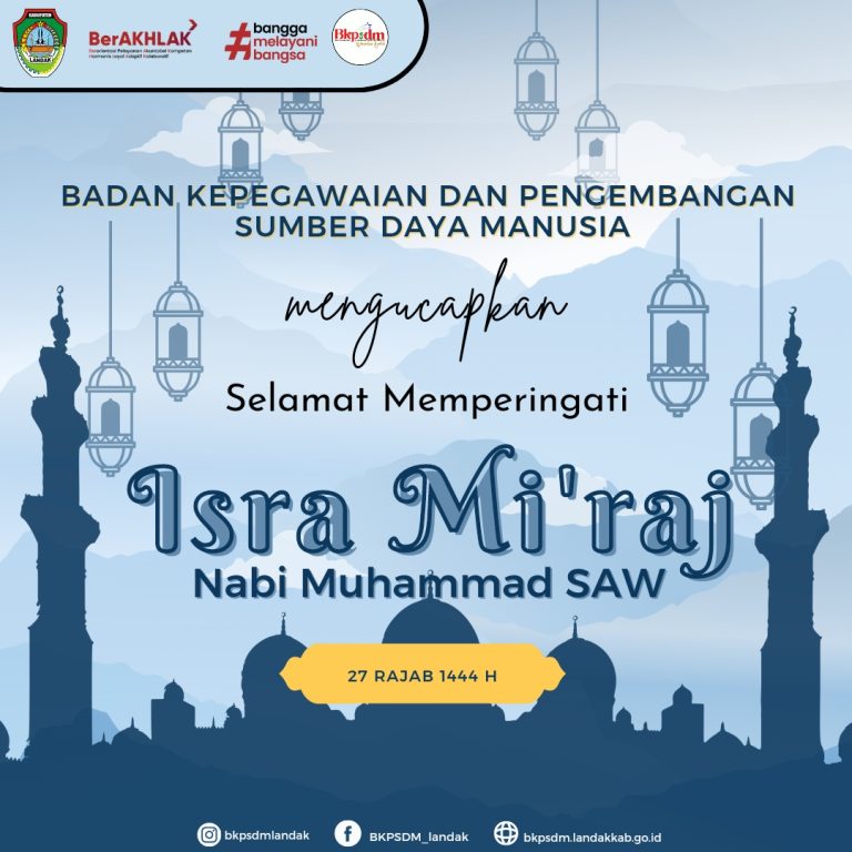 Badan Kepegawaian dan Pengembangan Sumber Daya Manusia Kabupaten Landak mengucapkan Selamat Memperingati Isra Mi’raj Nabi Muhammad SAW 27 Rajab 1444 H
