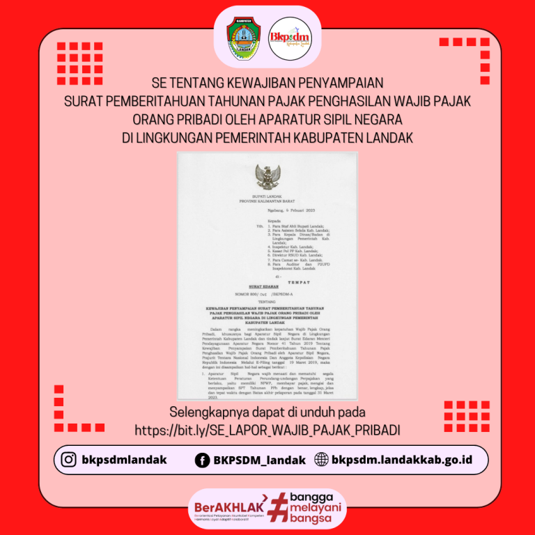 PENGUMUMAN HASIL SELEKSI ADMINISTRASI PENERIMAAN CALON PEGAWAI NEGERI SIPIL DI LINGKUNGAN PEMERINTAH KABUPATEN LANDAK TAHUN ANGGARAN 2024 Hai Para pejuang NIP, berikut PENGUMUMAN HASIL SELEKSI ADMINISTRASI PENERIMAAN CALON PEGAWAI NEGERI SIPIL DI LINGKUNGAN PEMERINTAH KABUPATEN LANDAK TAHUN ANGGARAN 2024. Pengumuman…